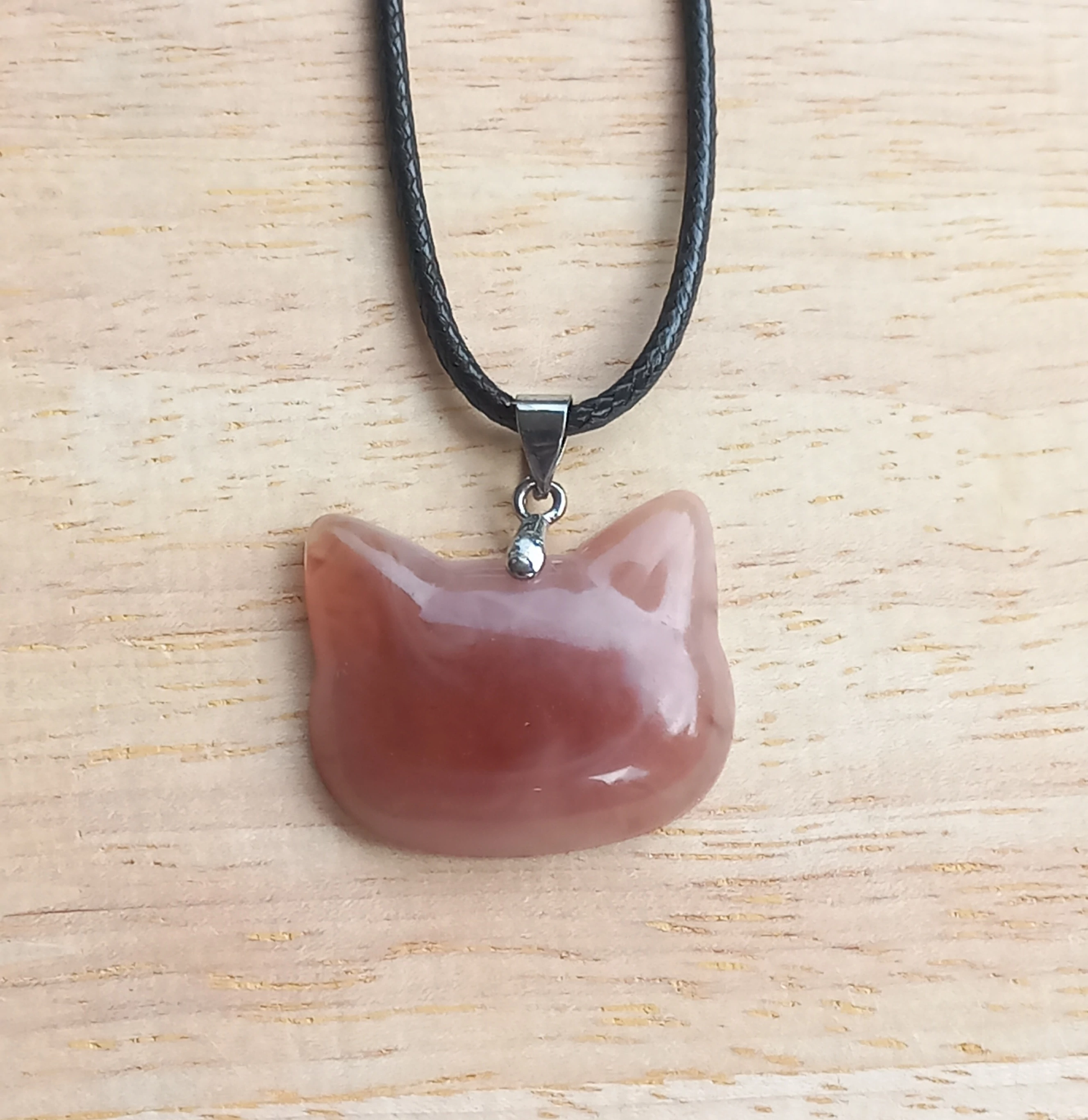 Epoxy gyantából készült cicafej medál bőr szálon.