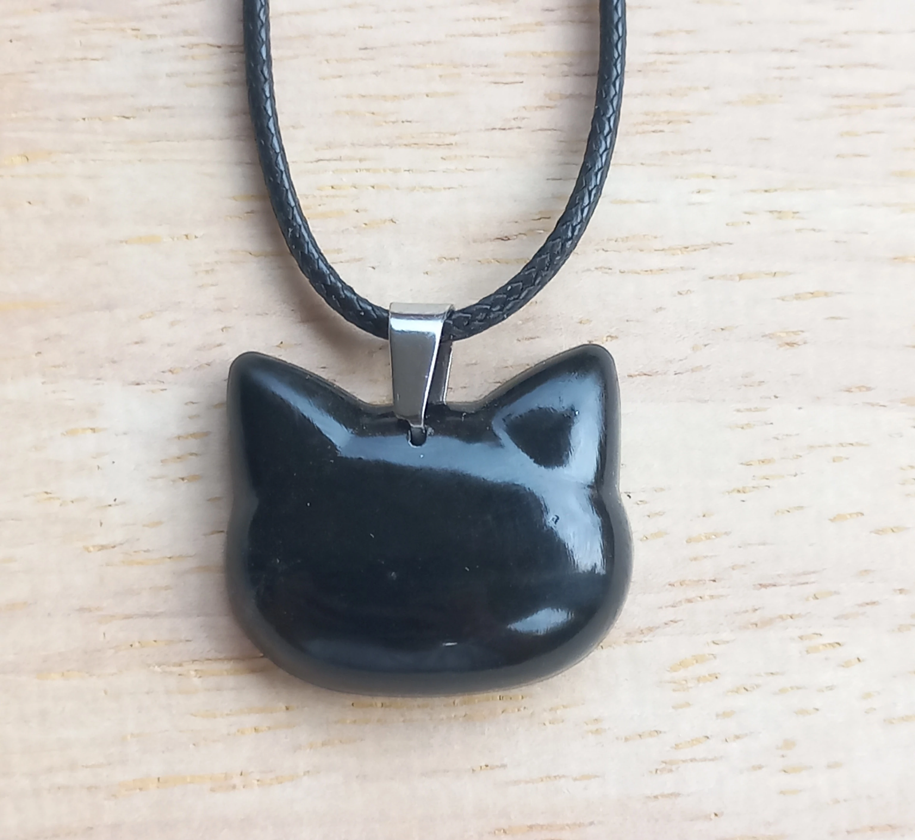 Epoxy gyantából készült cicafej medál bőr szálon.
