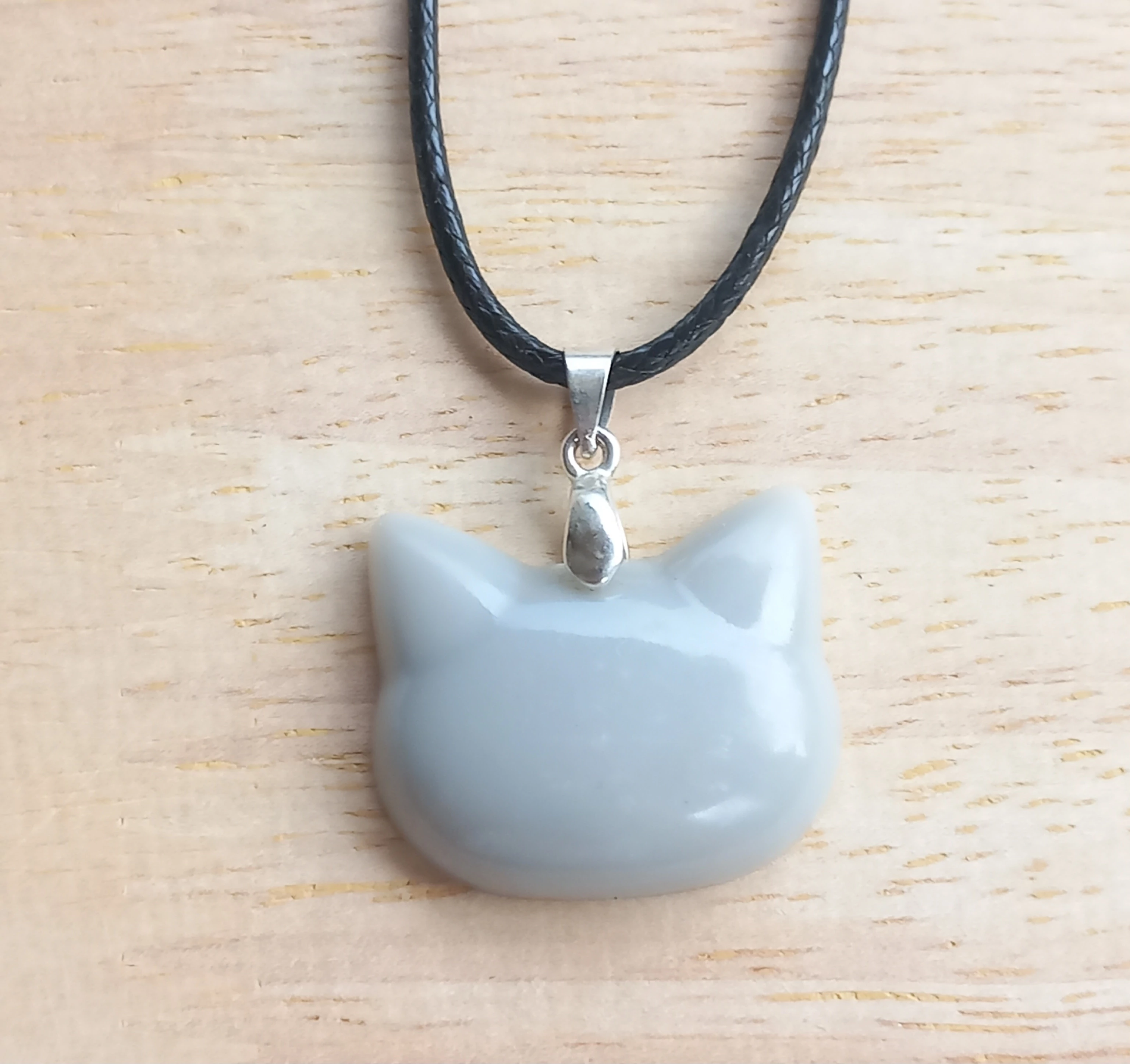 Epoxy gyantából készült cicafej medál bőr szálon.