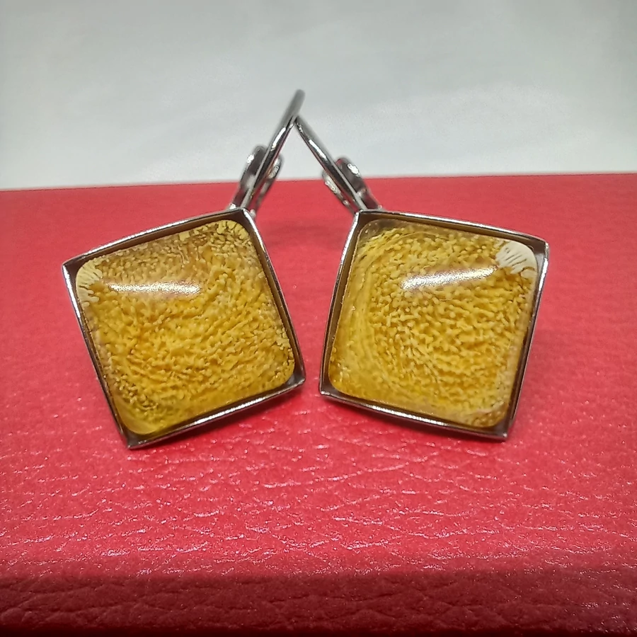 1 pár nemesacél francia kapcsos fülbevaló, 12x12 mm-es epoxy gyanta betéttel.