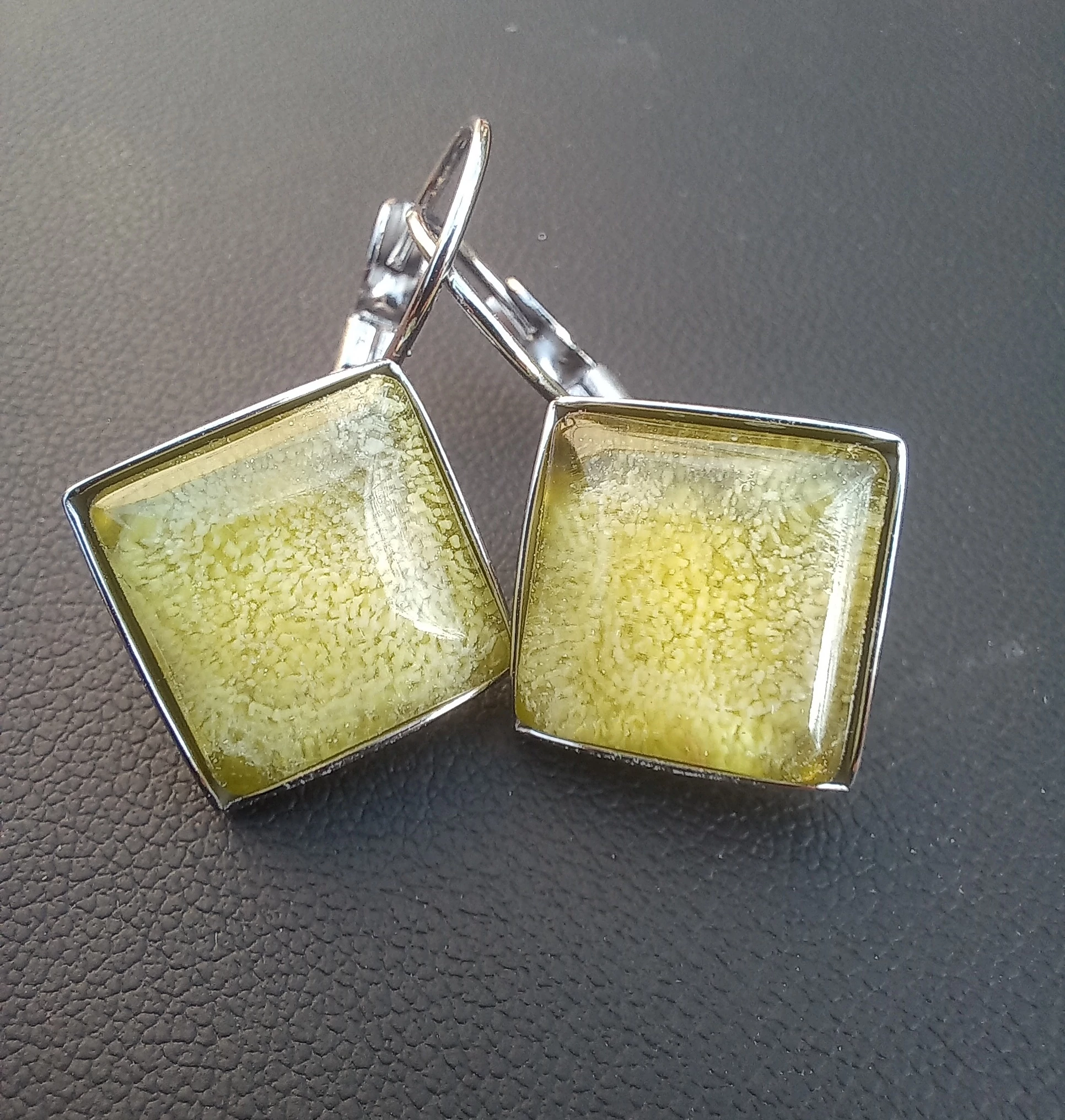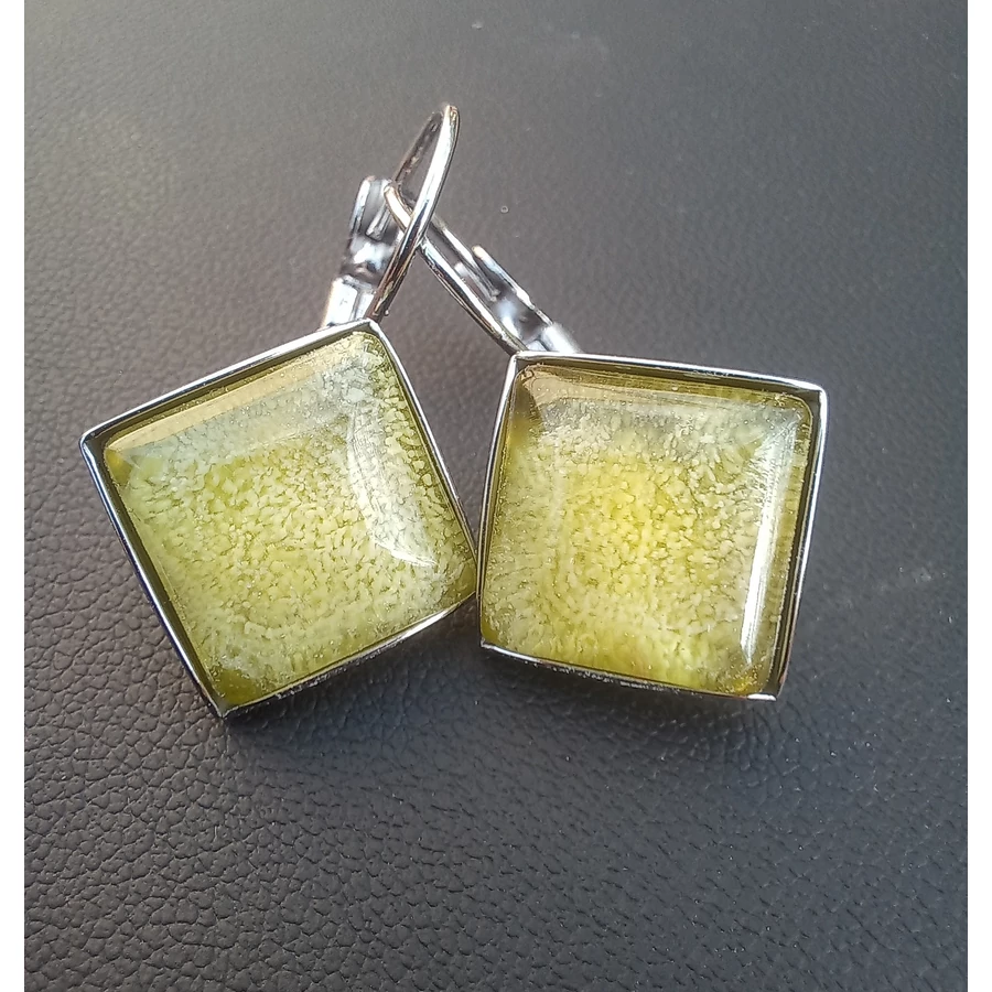 1 pár nemesacél francia kapcsos fülbevaló, 12x12 mm-es epoxy gyanta betéttel.