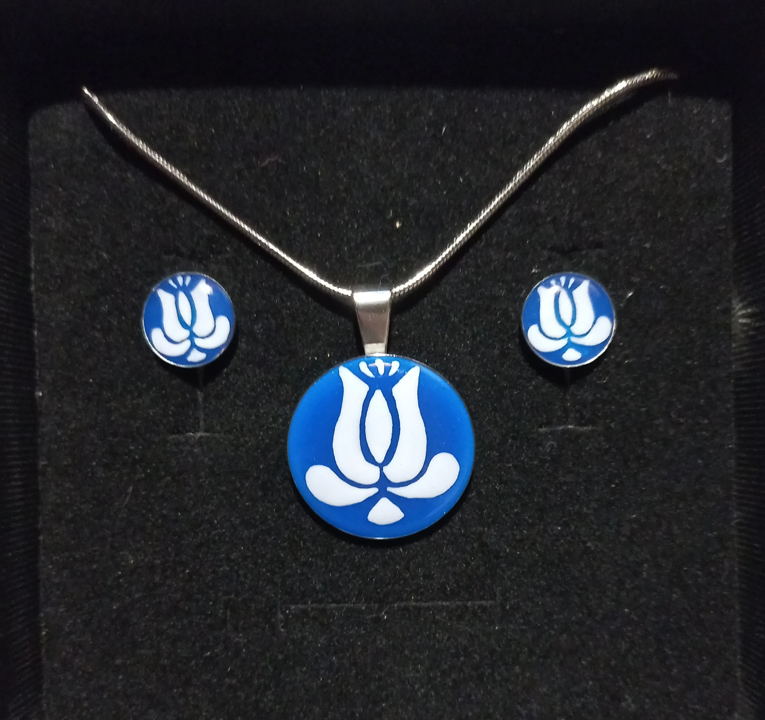 Egyedi kézzel festett kalocsai mintás szett UV gyantából.