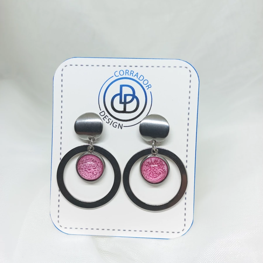 Nemesacél bedugós fülbevaló kerek foglalattal - Rózsaszín