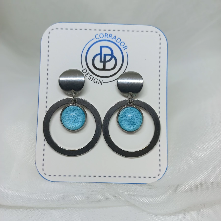 Nemesacél bedugós fülbevaló kerek foglalattal - Világoskék