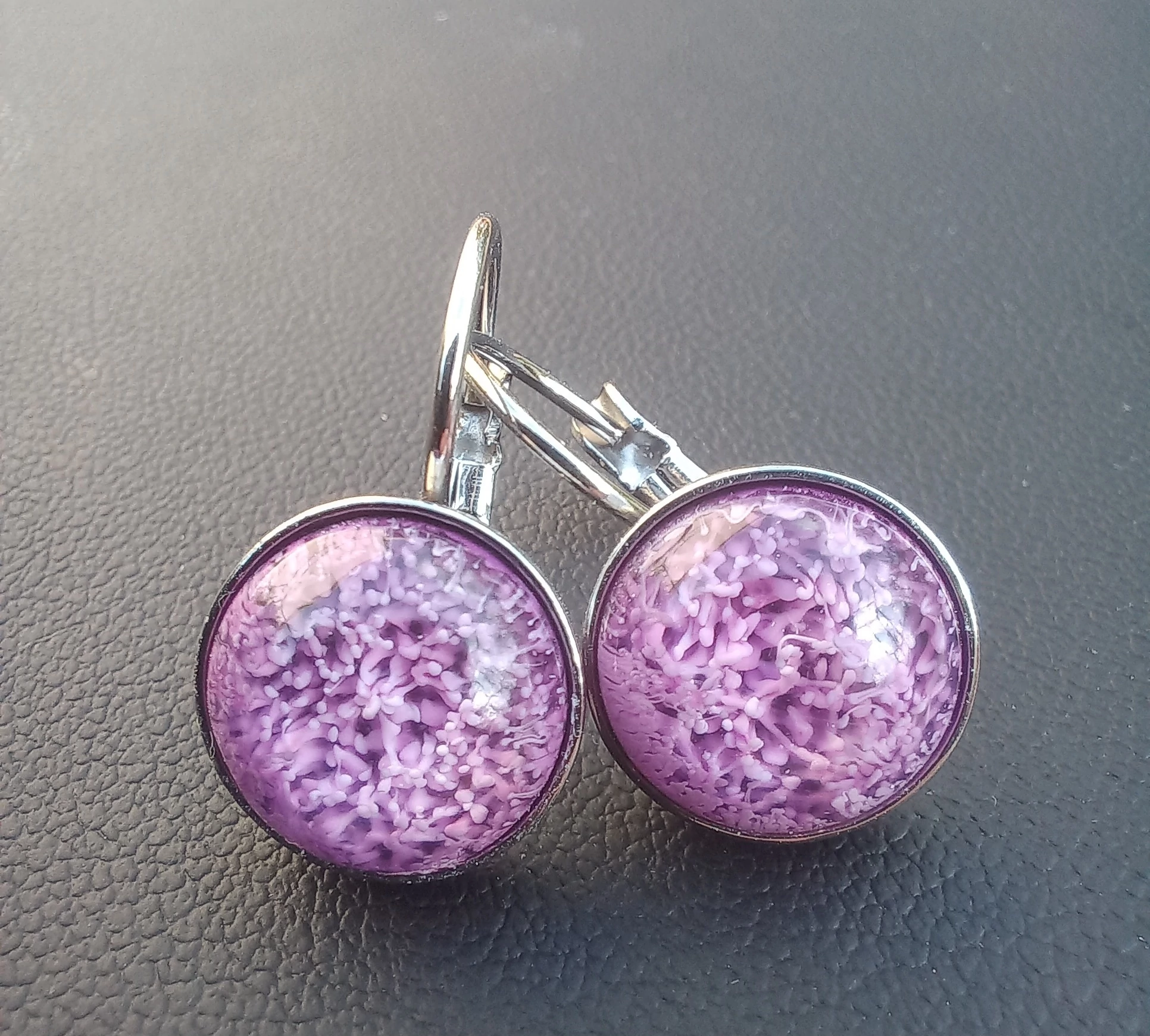 Nemesacél francia kapcsos fülbevaló alap kerek foglalattal - Lila