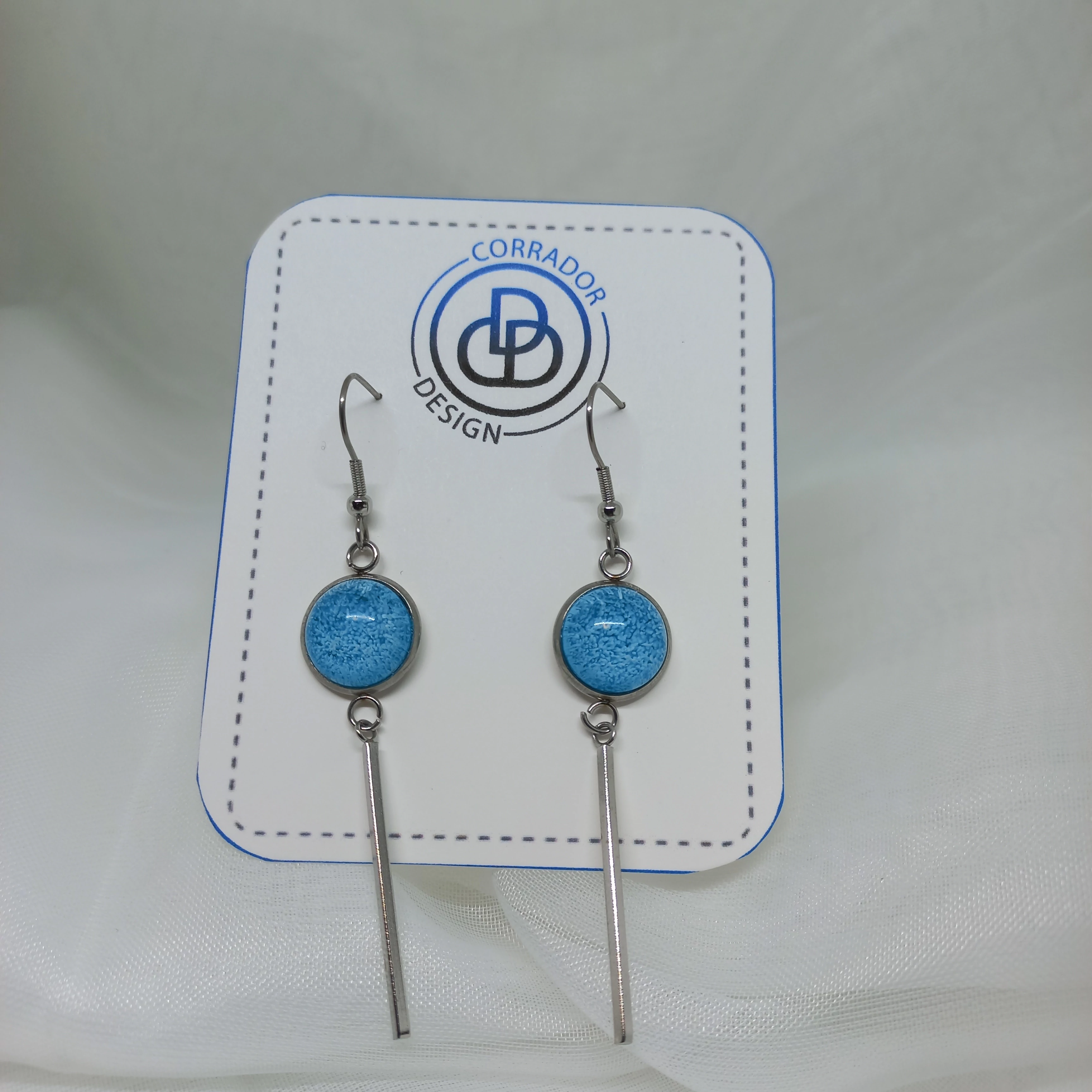 Nemesacél fülbevaló hosszú toldalékkal - Kék