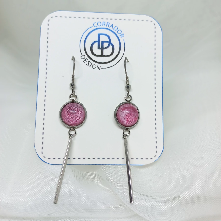 Nemesacél fülbevaló hosszú toldalékkal - Rózsaszín