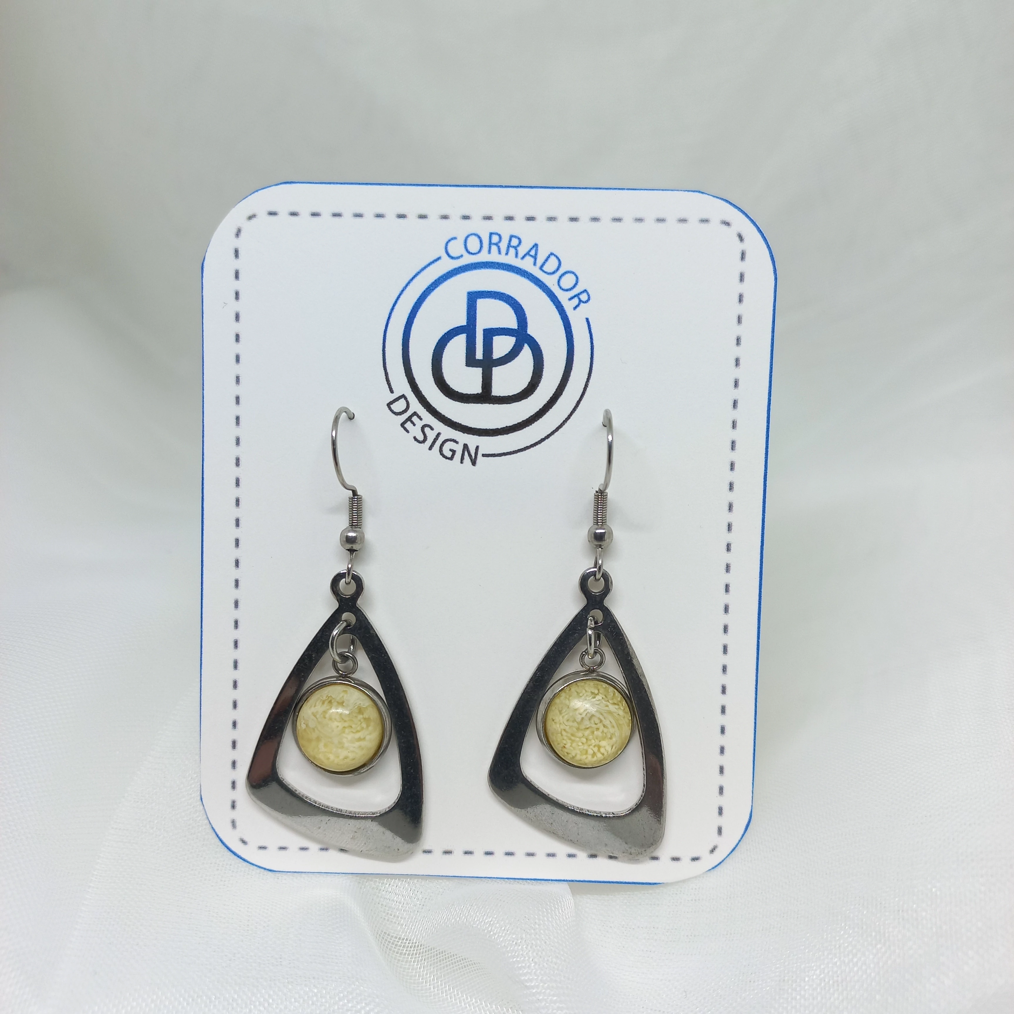 Nemesacél háromszög akasztós fülbevaló 10 mm-es epoxy betéttel.