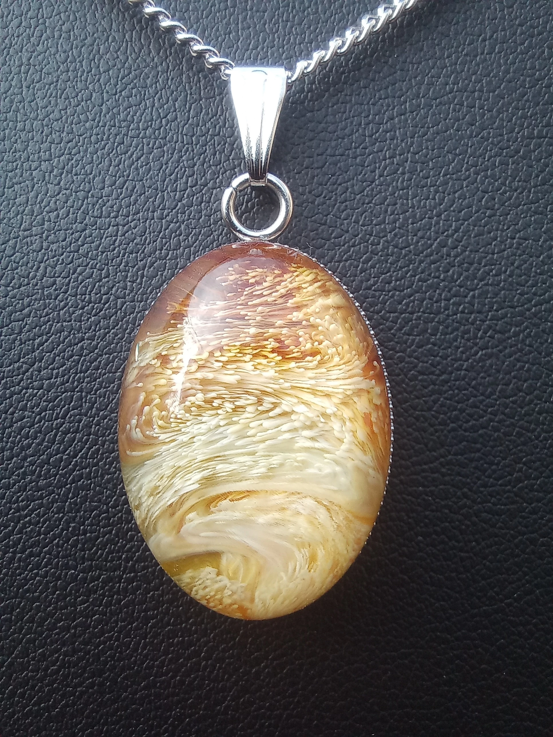 Elegáns gyanta ovális medálos nyaklánc nemesacél lánccal. A 18x25 mm‑es ovális epoxy gyanta medál tartós nemesacél alapban kapott helyet, amely hosszú ideig megőrzi fényét és szépségét. Kézzel készült CorraDor Design ékszer – egyedi kiegészítő ajándéknak vagy mindennapi viseletre.