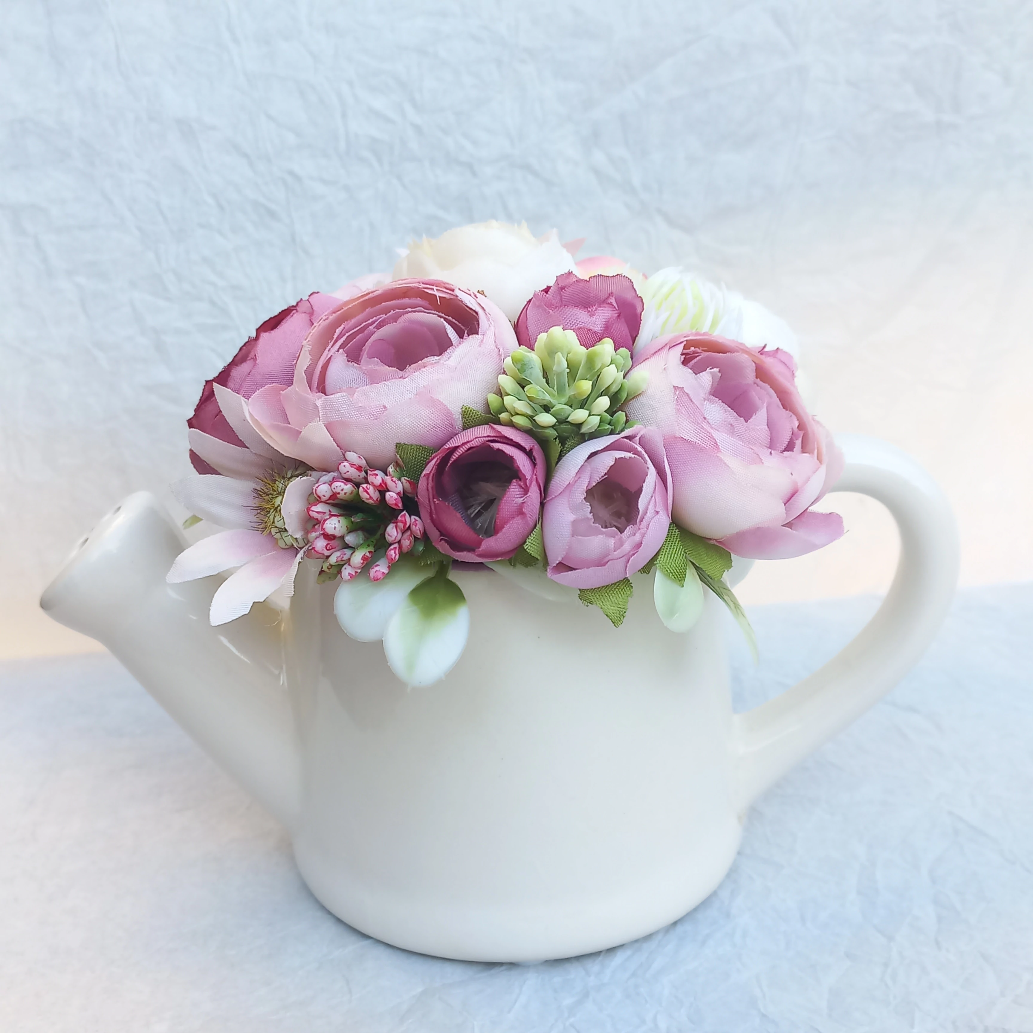 Fehér kerámia kaspós selyemvirág box.