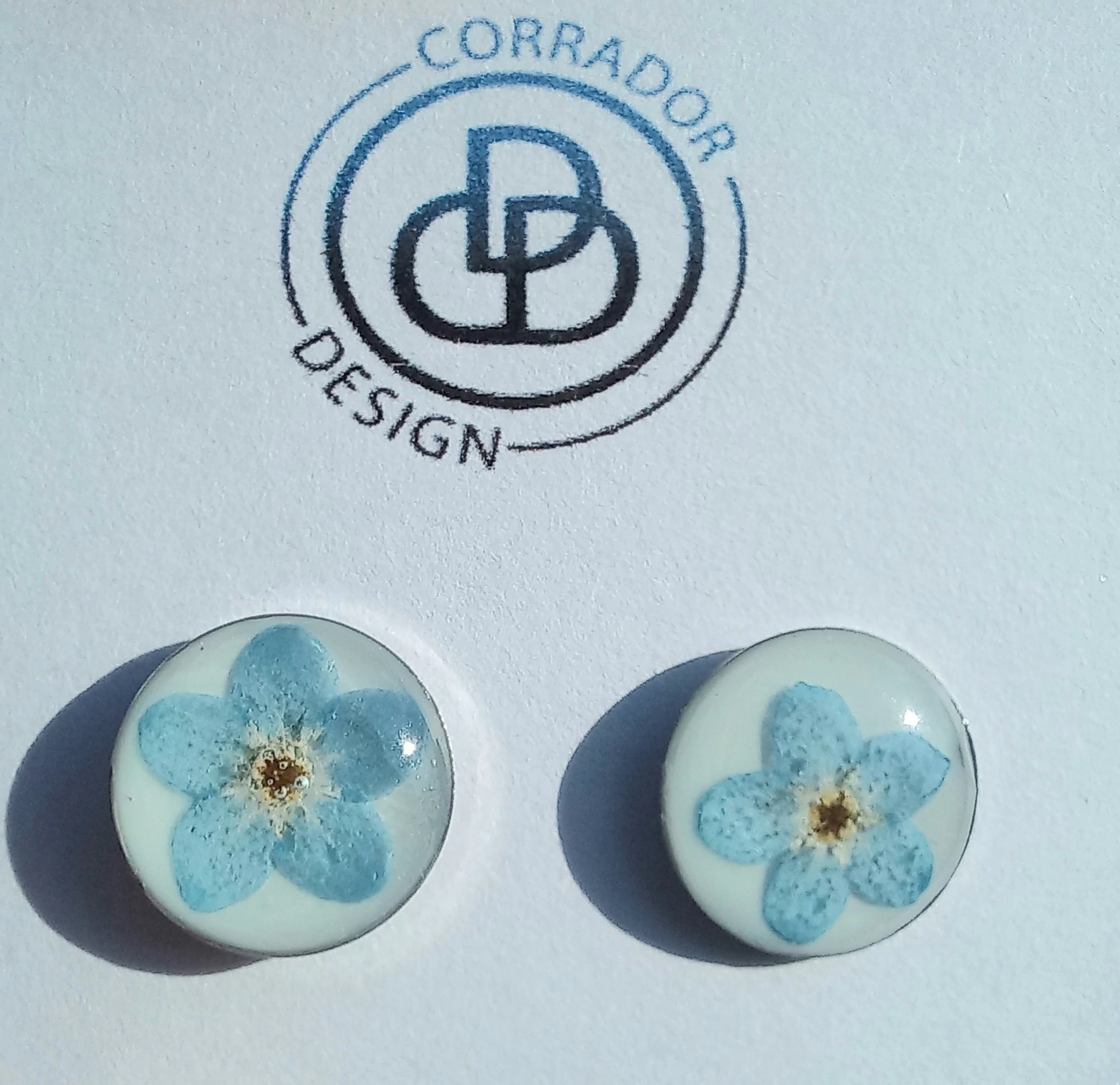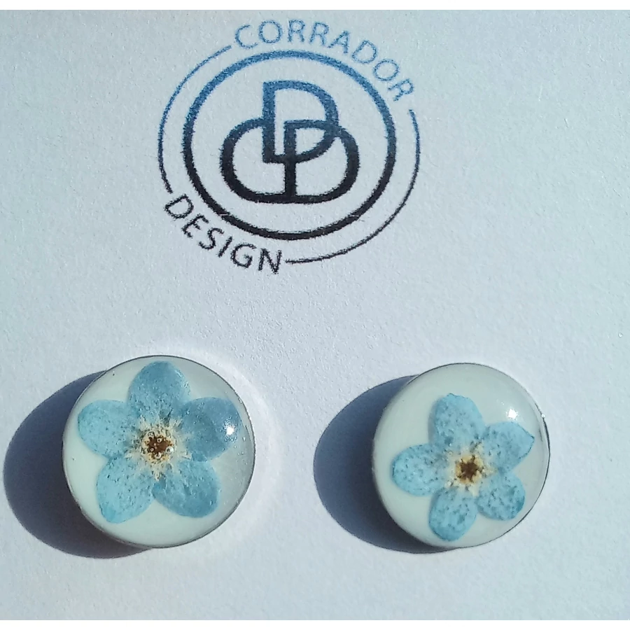 Szárított nefelejcsből készült bedugós fülbevaló nemesacél alapon.