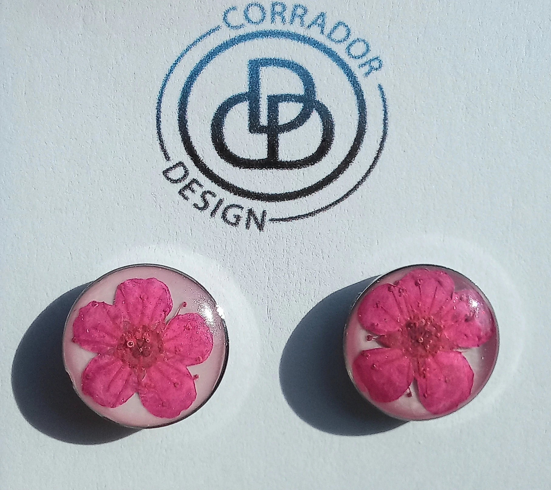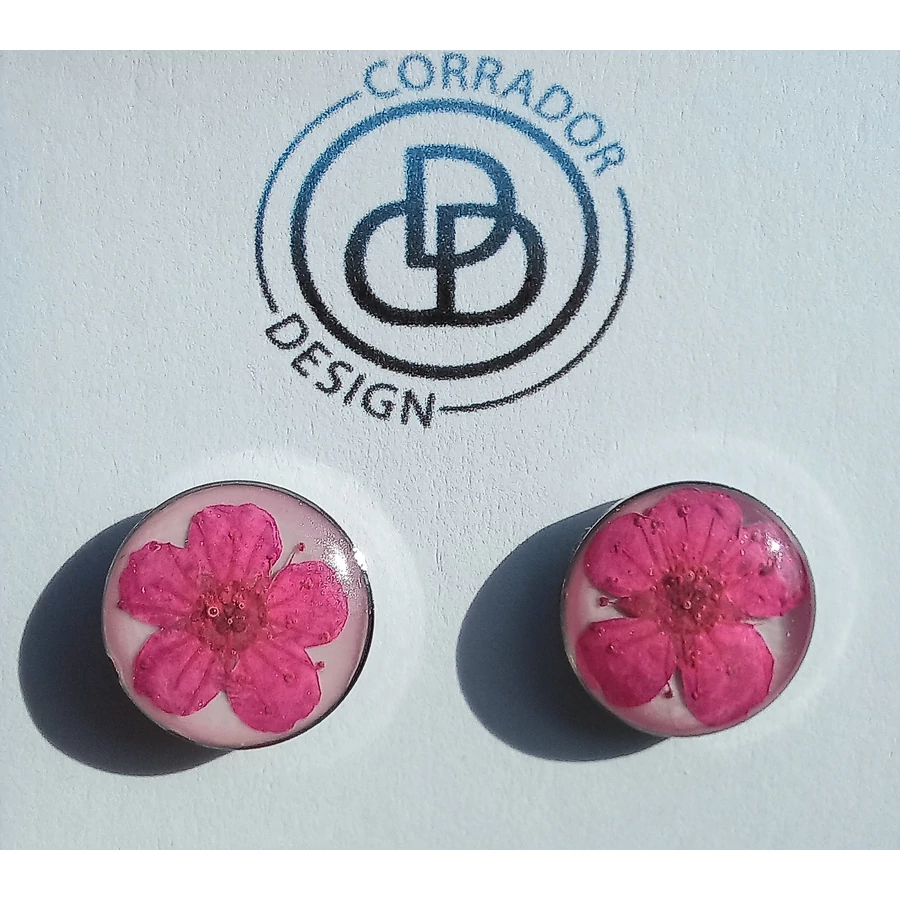 Szárított pink virágból készült bedugós fülbevaló nemesacél alapon.