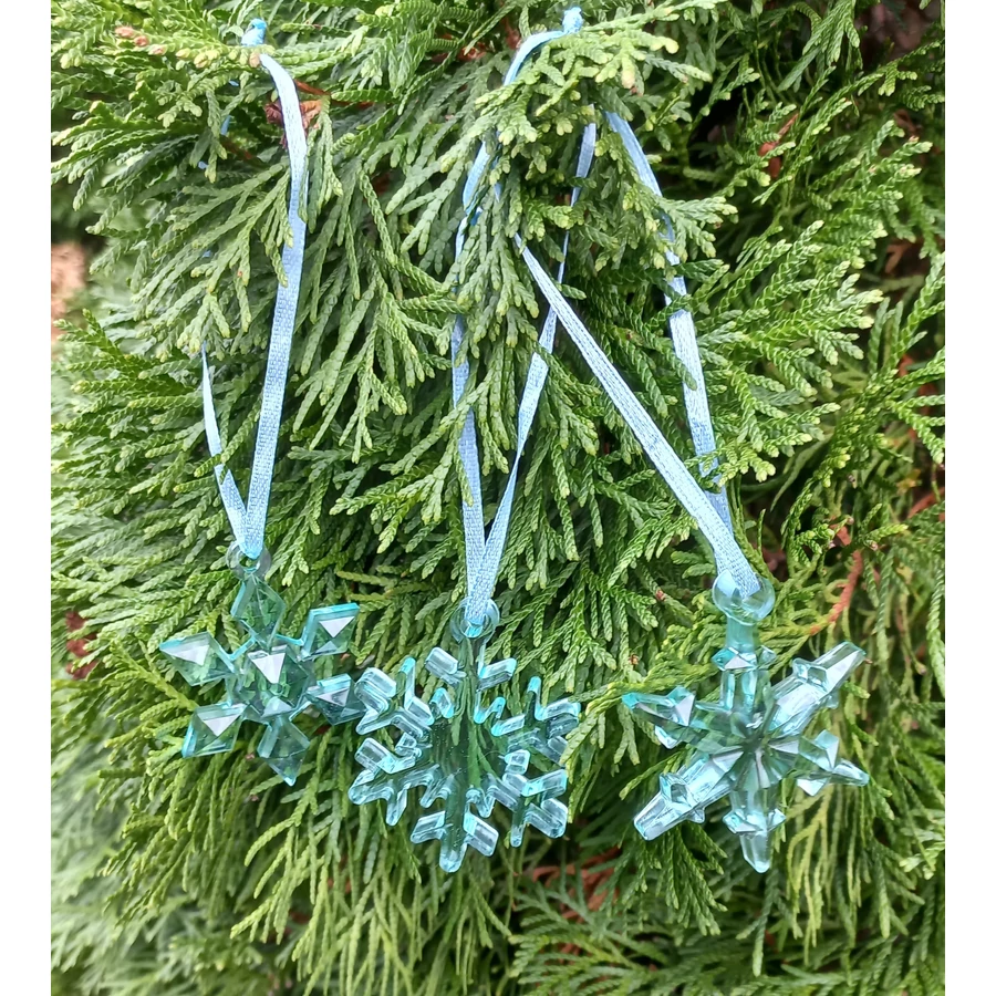 Epoxy gyantából készült hópihe karácsonyfadísz.