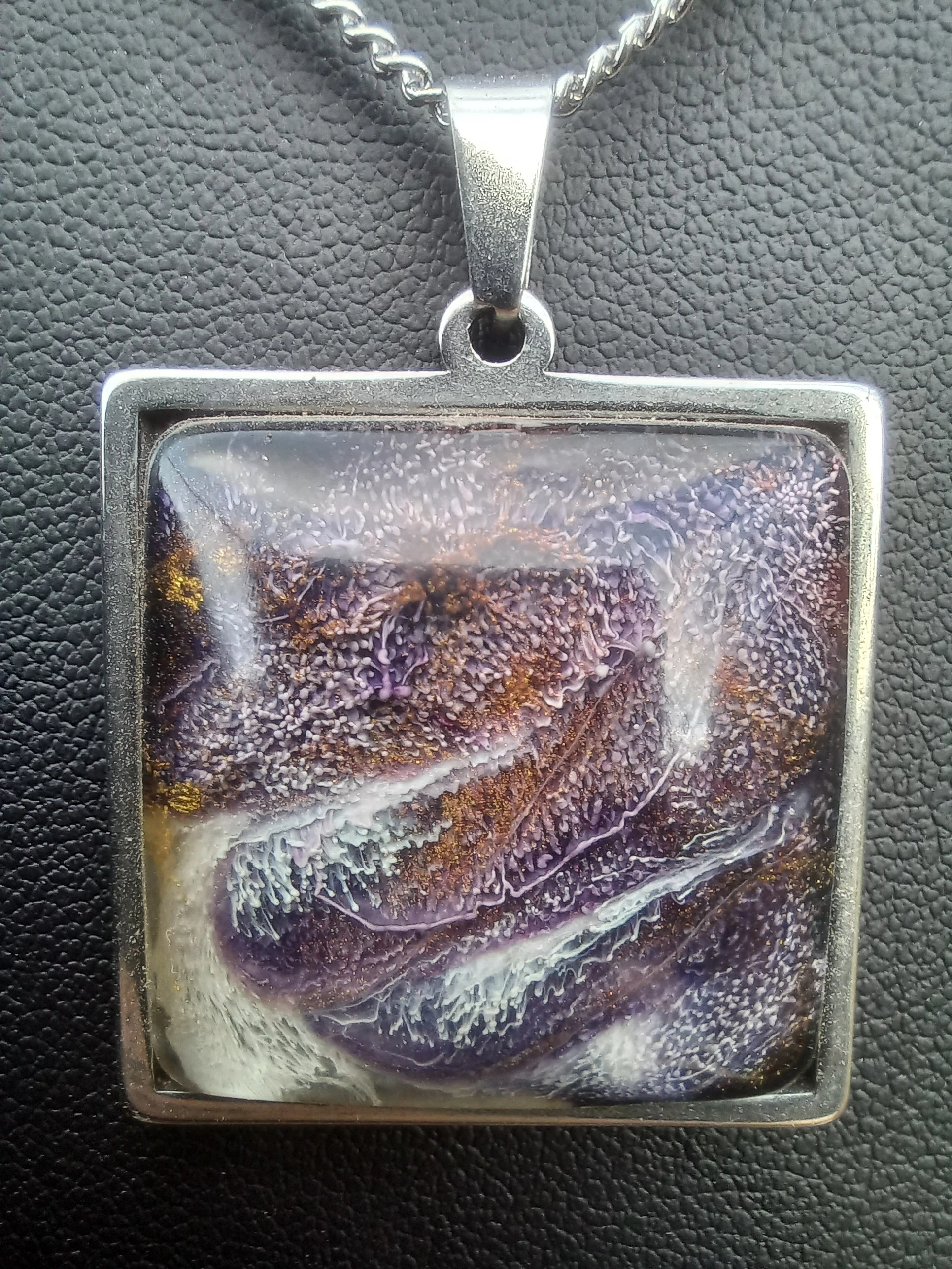 Nemesacél medál alap 25x25 mm-es epoxy gyanta betéttel és hozzá illő 45 cm-es nemesacél lánccal.